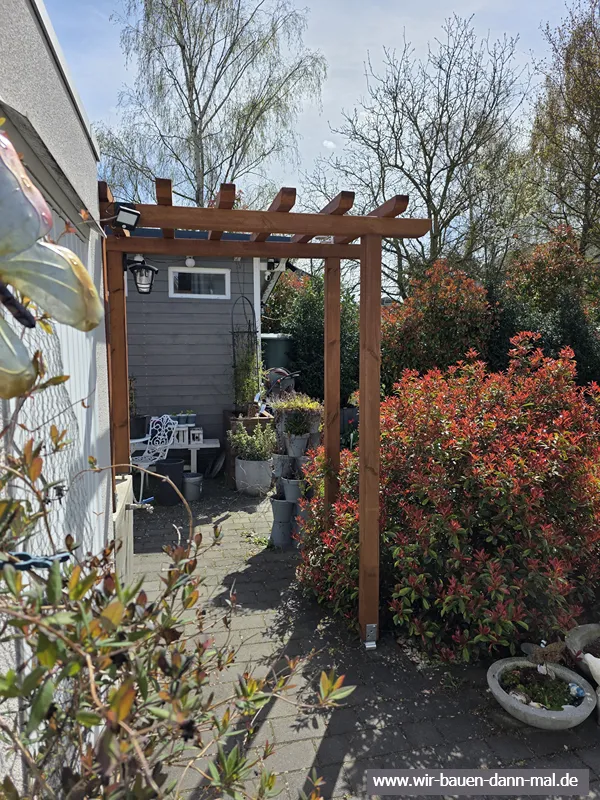 Pergolen verbinden Ästhetik und Funktion – sie spenden Schatten, strukturieren den Garten und schaffen neue Wohnräume im Freien. Frei nach dieser Definiton haben wir nun endlich auch eine Pergola als gestaleterisches Element und zur Raumeinteilung gebaut.